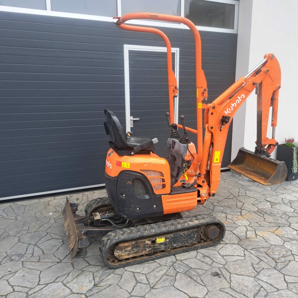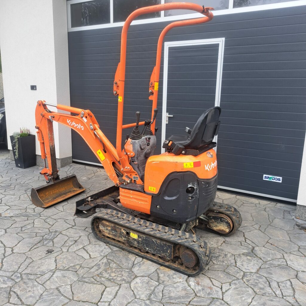použitý minibagr Kubota U10-3, rok výroby 2017, stav počitadla mth:1421h, roztahovací podvozek 70-86cm , 2 rychlosti pojezdu, stroj vhodný i do budov, projede dveřmi, nulový přesah zádě, mimoosé kopání, rozšiřovací radličky, hloubkový dosah 1,8m, hmotnost stroje 1.2tuny, v ceně stroje svahová lžíce, možno dokoupit rychloupínač, lžíce šířky 20,25,30,40,50 a jiné příslušenství, vše skladem.