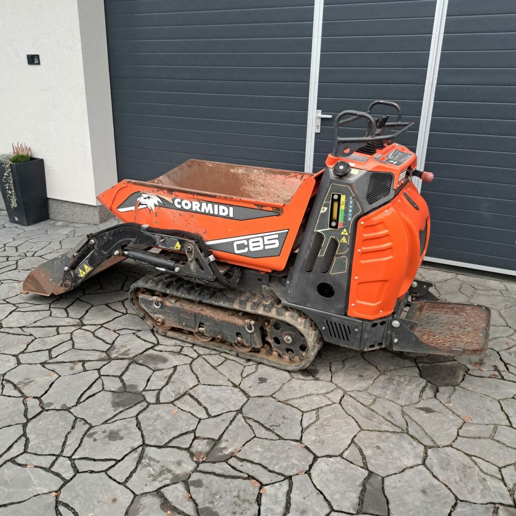 Použitý samonakládací dempr CORMIDI C85, rok výroby 2021, naftový motor Kubota, koupeno v CZ, návod k obsluze součástí.
