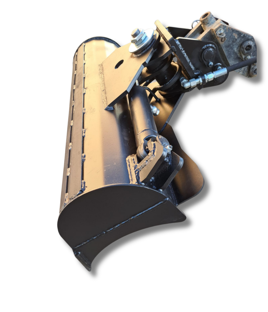 Jedná se o hydraulickou svahovou lopatu šířky 100cm. Lopata je vybavena silným břitem Hardox síly 16mm. Středový čep je uložen v kalených futrech. Tato lopata je dodávána s vývody hadic pouze po plotnu úchytu.
