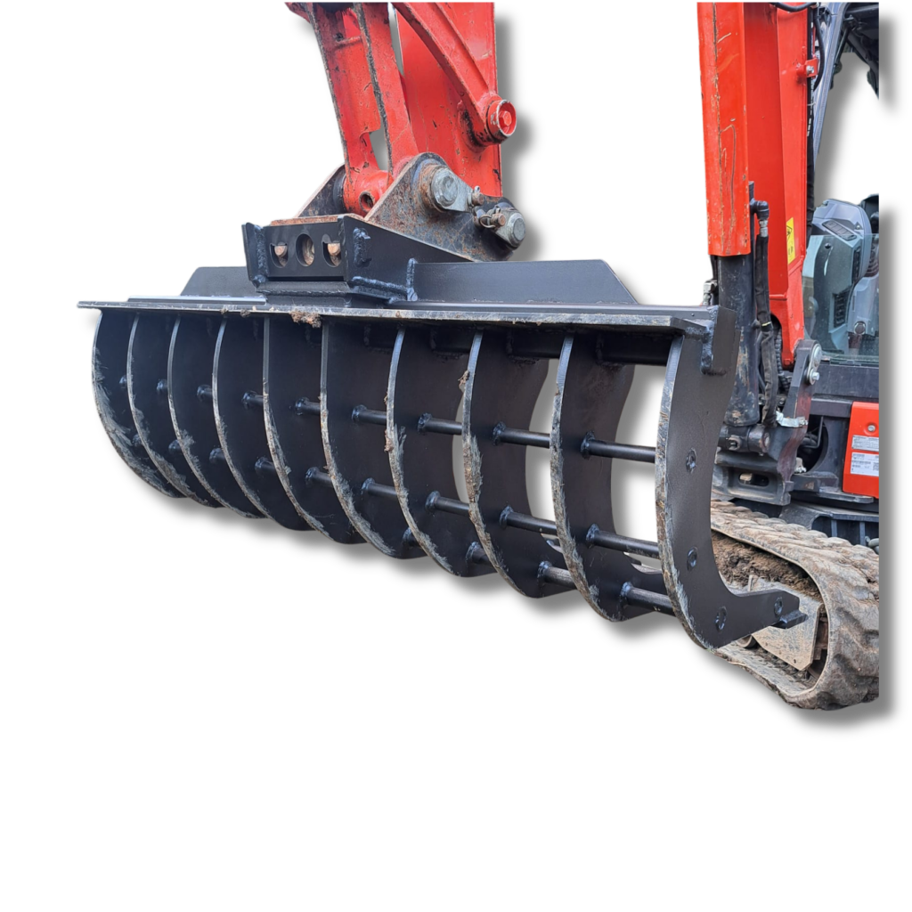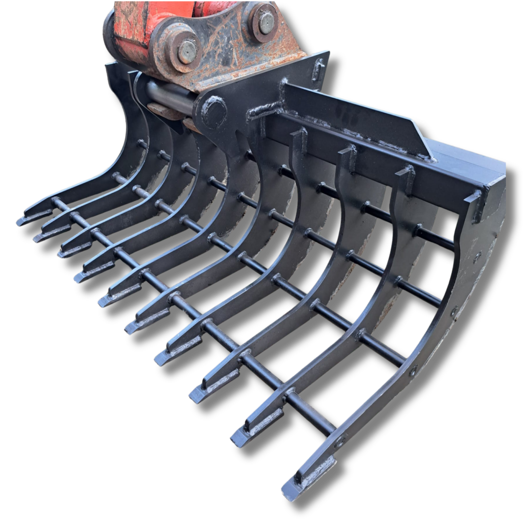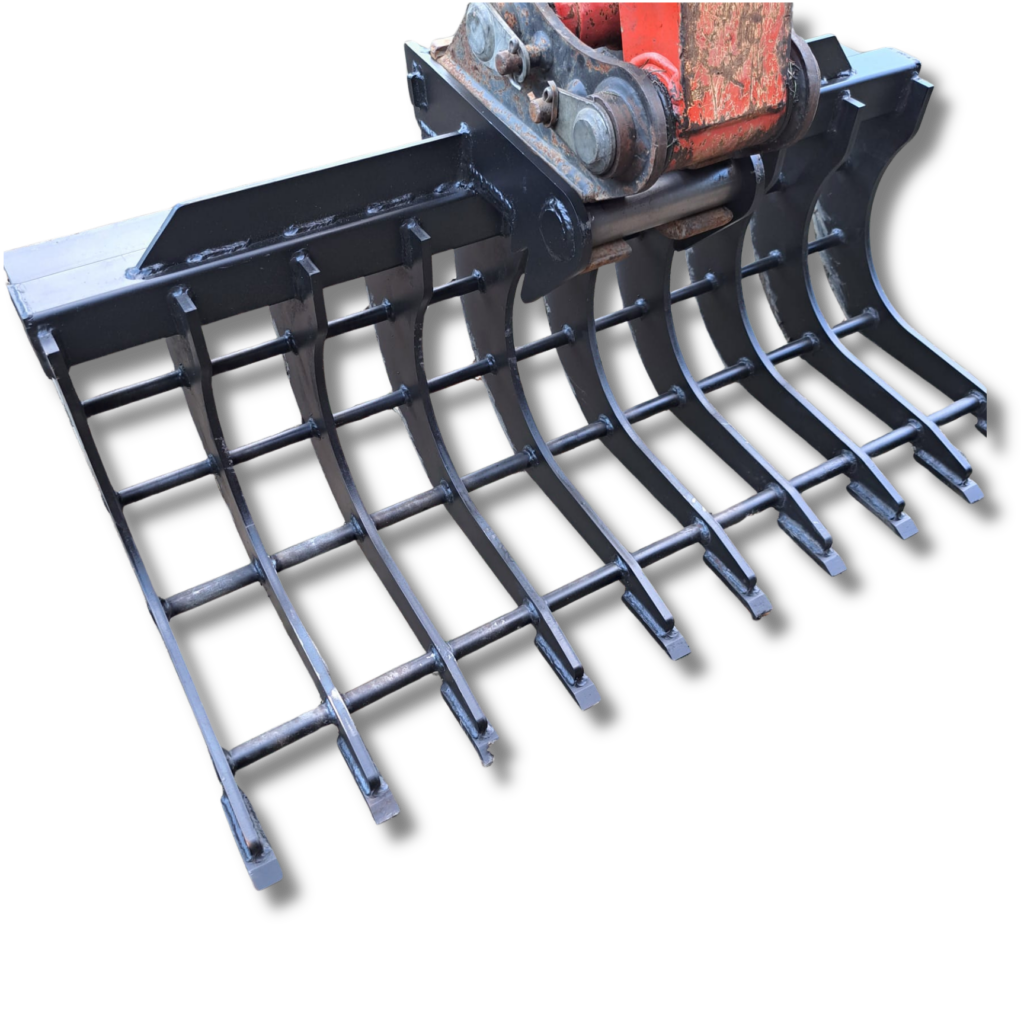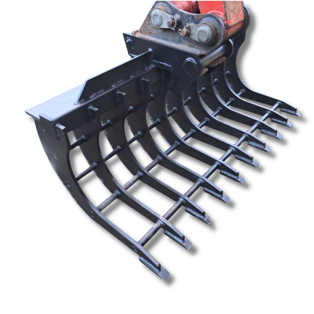 Jedná se o hrábě šířky 120cm. Hrábě jsou vybaveny silným břitem Hardox síly 16mm. Hrábě jsou určeny k úklidu klestu a náletových dřevin. Mezera mezi žebry je 10cm.